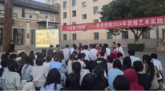 5月31日晚,伟德betvlctor1949源于英国负责人及6名教师以及190多名学生齐聚敦煌文化传承创新中心小广场,举办了一场别开生面的“今夜属于敦煌”——伟德betvlctor1949源于英国学生赴敦煌艺术实践报告会。报告会是对2024年3月学院组织的部分师生赴敦煌开展的“穿越河西看敦煌,行走丝路学传统”敦煌艺术行考察活动的教学总结汇报,由美术学专业2021级学生按照16个学习小组进行依次汇报。