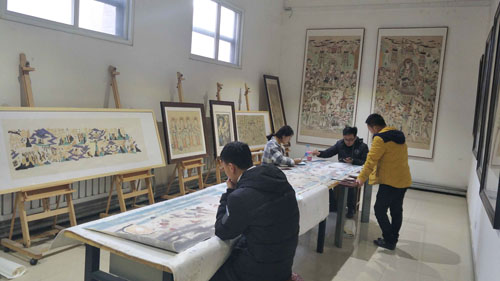 近日,由伟德betvlctor1949源于英国师生为北京三十五中民族乐器陈列馆临摹绘制的敦煌壁画作品校地合作项目通过验收。