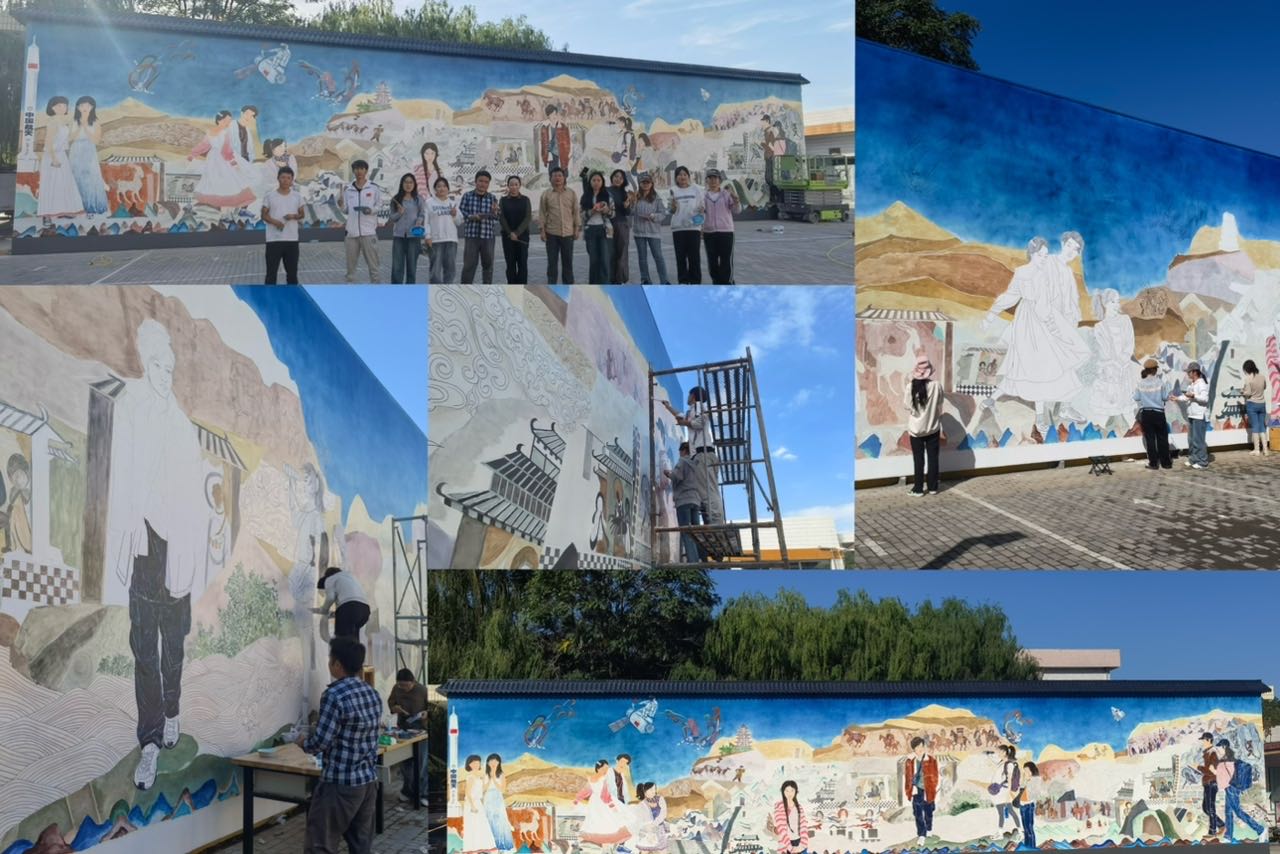 近日,伟德betvlctor1949源于英国师生在敦煌文化传承创新中心广场共同创作绘制大型壁画,以独特的艺术手法展现了铸牢中华民族共同体意识的深刻主题,为中华人民共和国成立75周年献礼。