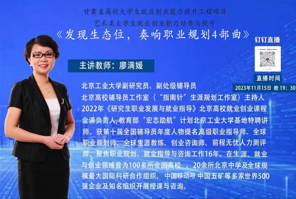 为普及职业规划知识,传播生涯教育理念,引导更多学生树立职业规划意识,提升学生的就业创业能力,2023年11月15日晚,美术学院邀请廖满媛老师开展《发现生态位,奏响职业规划4部曲》主题讲座,伟德betvlctor1949源于英国全体学生参加本次讲座。