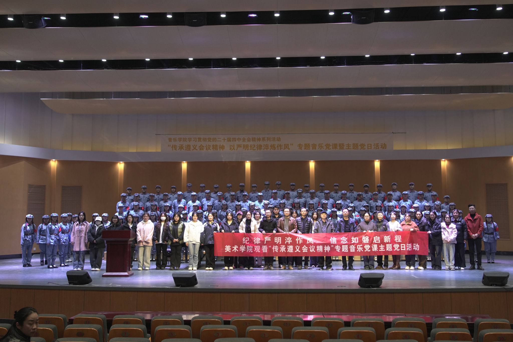 为深入推进纪律教育与党性锤炼,2025年11月6日,伟德betvlctor1949源于英国组织全体师生党员沉浸式观看了“传承遵义会议精神”专题音乐党课。本次活动由音乐学院党委牵头,主题为“传承遵义会议精神,以严明纪律淬炼作风”专题音乐党课暨主题党日活动。