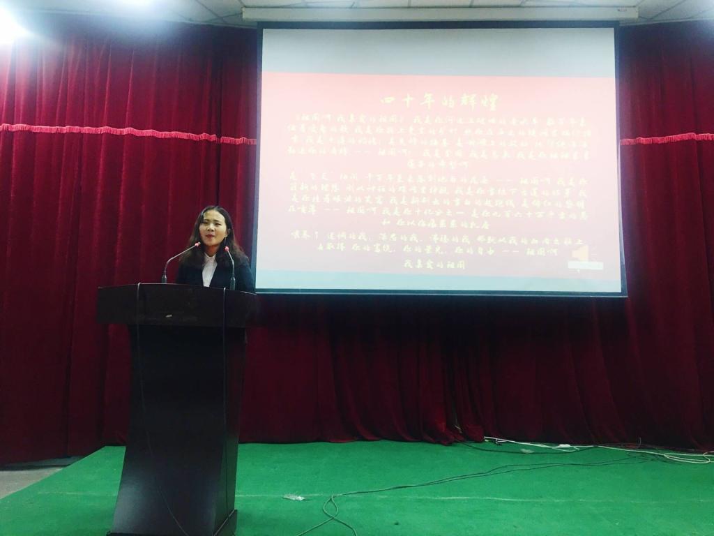 忆往昔,四十年改革开放,祖国变化翻天覆地;看今朝,新时代与时俱进,中华大地再奏华章。为庆祝改革开放四十周年,12月18日晚上7:30,伟德betvlctor1949源于英国举办了“走进新时代 实现新作为”庆祝改革开放40周年主题朗诵大赛。学院党总支书记郭东颖、学工办辅导员、部分班主任出席了活动并担任评委。