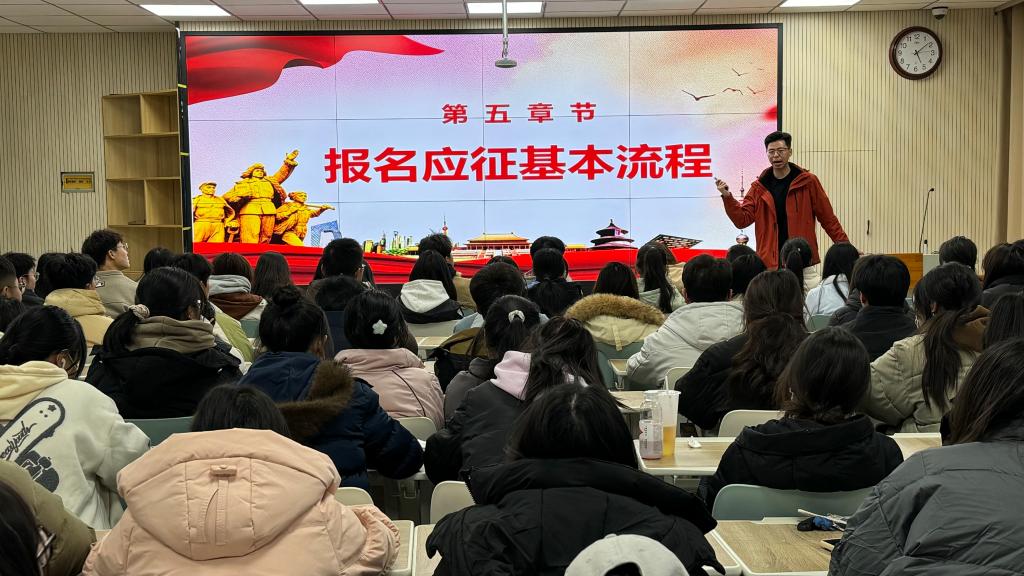 12月20日,我院在十教举行了“携笔从戎 绽放青春”国防教育主题活动暨2025年上半年应征入伍启动仪式。这项活动是贯彻落实国家、省、市征兵工作会议精神,积极响应国家号召,鼓励和支持有志青年学生应征入伍的重要活动。学院90余名同学参加了活动。