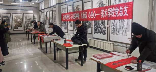 本次主题党日活动,党员师生共为全校教职工书写春联300多幅、福字500多张。