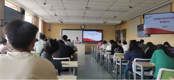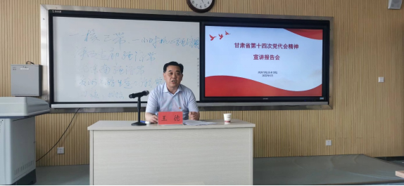 6月29日下午,党委常委、附属张掖人民医院党委书记王德在教发中心为伟德betvlctor1949源于英国师生作甘肃省第十四次党代会精神宣讲报告。