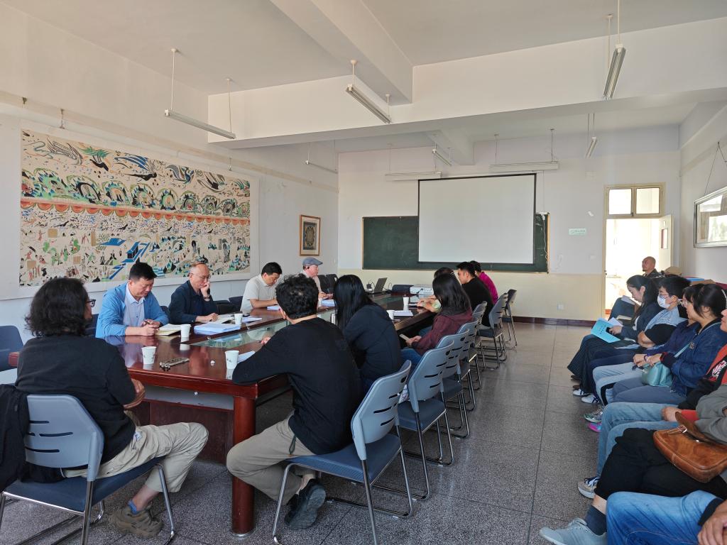 此次会议还邀请了兰州理工大学设计艺术学院副院长张新红对学院的自评报告以及认证工作进行了指导。张新红介绍了围绕学生、培养目标、师资队伍、教学资源、教学管理和质量保障等方面的评估细节,他结合自身工作经历和具体案例进行了分享。
